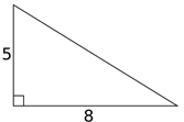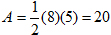 , where b is the length of the base and h is the triangle’s height. In the figure, the base is 8 and the height is 5. Substitute these values into the formula and calculate the area.