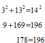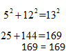 Since the result is not a true equality, the first set of values does not represent the side lengths of a right triangle. Test the other four choices. The only values that satisfy the Pythagorean Theorem are 5, 12, and 13.