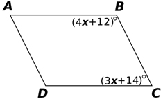 8. The figure below is a parallelogram with two angles given in terms of x. Determine the value of x.